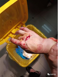大田小家,阿姨今天下午在我家做清洁的时候,手遭玻璃划伤了,一直在流血,我正在送阿姨去医院!